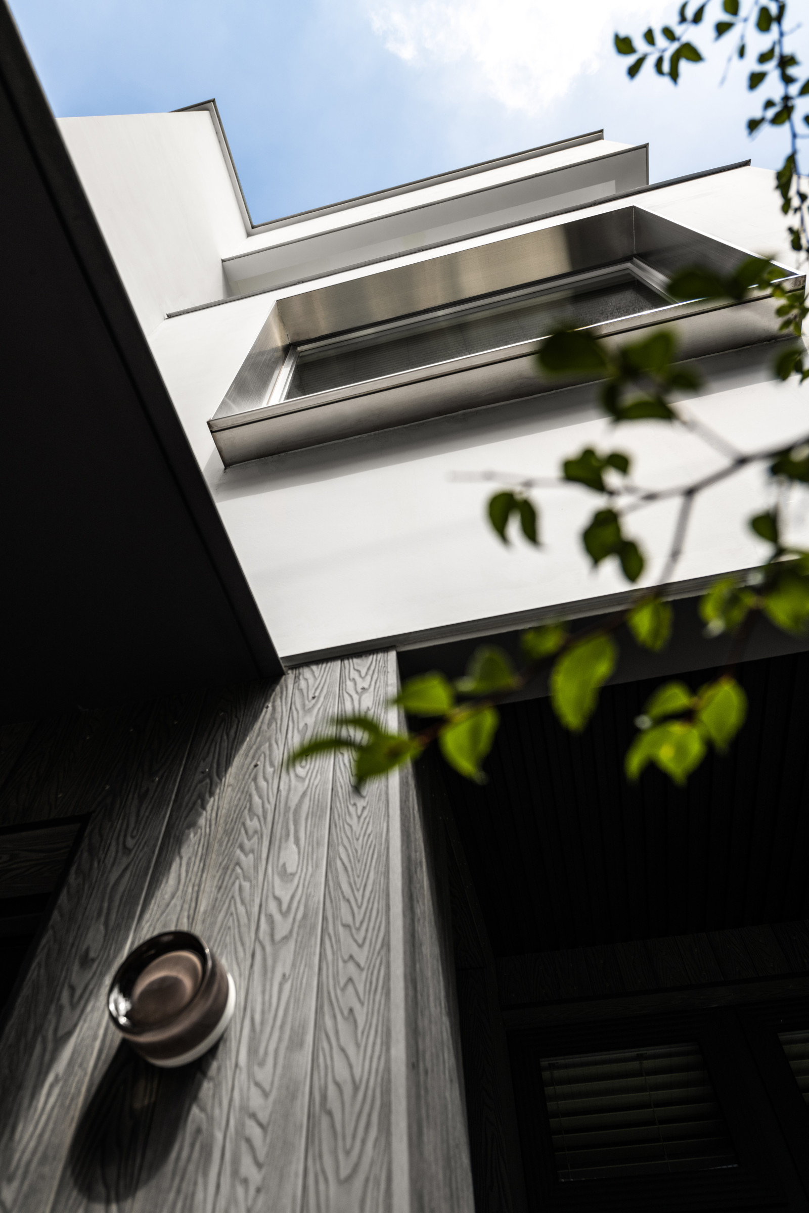 庭院的清雅樹形引綠意入室,簡化原始動線與布局,呼應屋主當下生活需求,為老宅注入新生。長形中島為公區核心,融合石材與木紋,平衡場域比例,營造溫潤質感。室內結構補強、機電重整,並以木紋飾材與米白特殊塗料鋪陳細膩層次。樓梯改為懸臂式,搭配鋼索扶手與茶鏡,呈現輕盈延伸感,頂部挑空天窗引入日光,隨光軌變化營造豐富光影。玄關地坪下凹作集塵區,入門一路延伸至餐廚的收納設計,融合風琴簾、格柵門、電器櫃與鐵件層板,展現異材質協調美感。懸臂梯對向隱藏儲物室,串聯展示與收納機能。中島圓角設計消弭銳利感,搭配米灰水磨石地坪與木皮立面,營造清新復古氛圍。搭載明火與IH爐,靈活應用,上方薄膜天花柔化光線,紫石材背景牆增添視覺張力。二樓通道以全隱式拉門整合為視聽與工作區,木質與米灰色調交織出靜謐氛圍。主臥延續弧形語彙與魚骨拼木地板,天窗引光,散發柔美氛圍。更衣室設L型收納與移動全身鏡,調節視覺比例。梳妝台兼具書桌機能。衛浴乾濕分離,結合壁龕、獨立浴缸與電熱毛巾架,打造舒適洗浴體驗。| 新竹室內設計 | 空間規劃 | 中古屋翻修 | 老屋翻新 | 舊屋翻修 | 建築設計 |